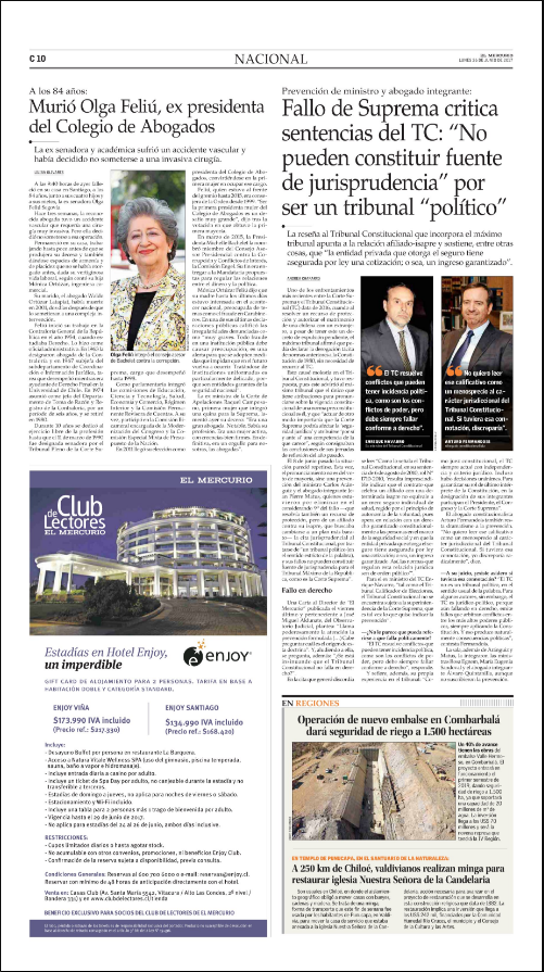 Una Carta al Director de «El Mercurio» publicada el viernes último y perteneciente a José Miguel Aldunate, del Observatorio Judicial, plantea: «Llama poderosamente la atención la prevención formulada (…) Cabe preguntar cuál es el origen de esta doctrina». Y, aludiendo a ella, se pregunta, además: «¿Se está insinuando que el Tribunal Constitucional no falla en derecho?».