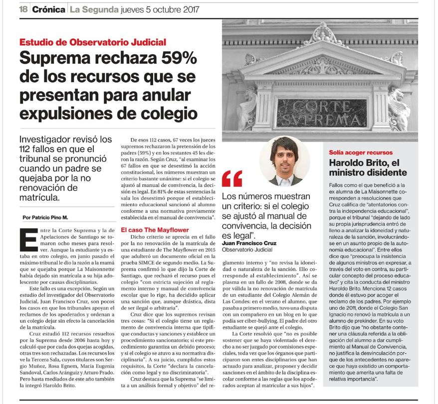 Estudio del Observatorio Judicial analiza la jurisprudencia de la Corte Suprema en cancelación de matrícula escolar.