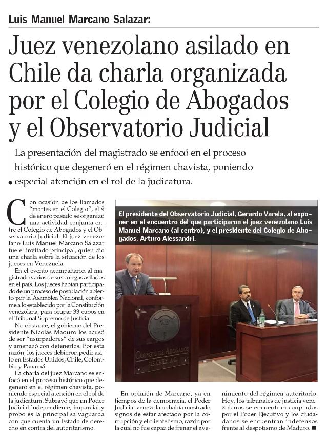 Diario El Mercurio destaca charla organizada por el Observatorio Judicial, en conjunto con el Colegio de Abogados.