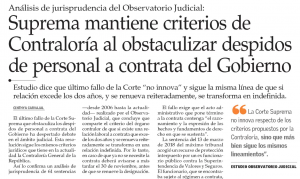 Diario El Mercurio publica noticia sobre informe del Observatorio Judicial que analiza la jurisprudencia de la Corte Suprema respecto a despido de funcionarios públicos.