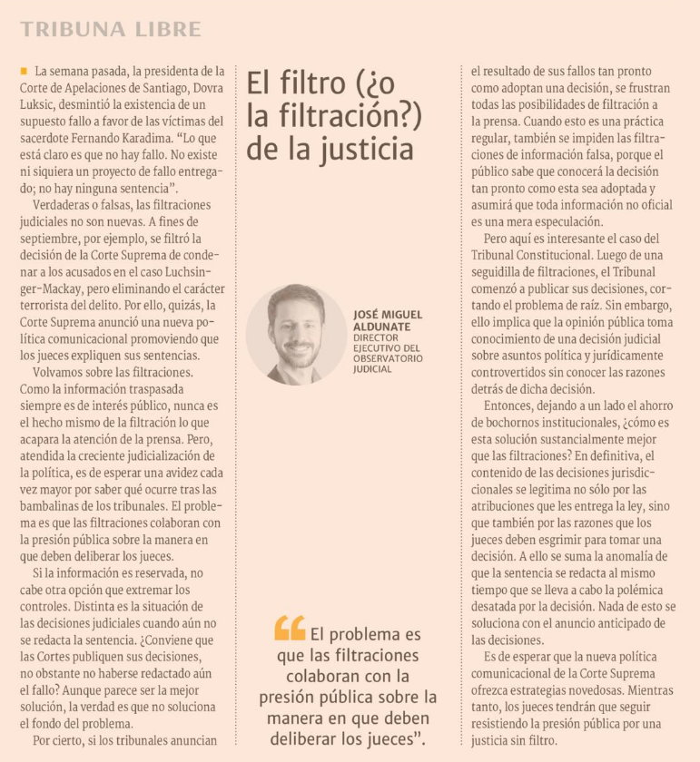 «El problema es que las filtraciones colaboran con la presión pública sobre la manera en que deben deliberar los jueces».