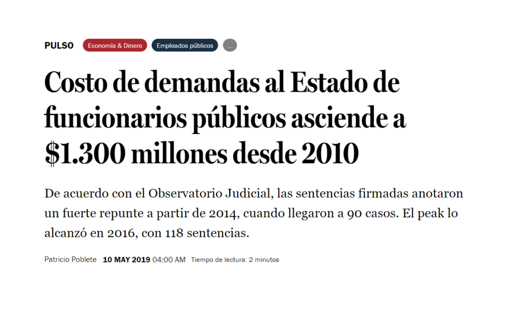 Costo de demandas al Estado de funcionarios públicos asciende a $1.300 millones desde 2010