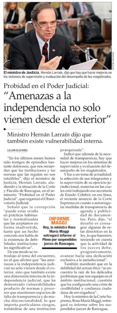 Declaró el ministro Hernán Larraín, en el seminario «Probidad en el Poder Judicial», organizado por Observatorio Judicial