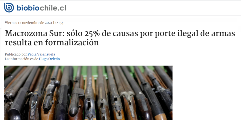 Un estudio del Observatorio Judicial revela desalentadoras cifras en cuanto a las formalizaciones efectuadas por el delito de porte ilegal de armas en la Macrozona Sur