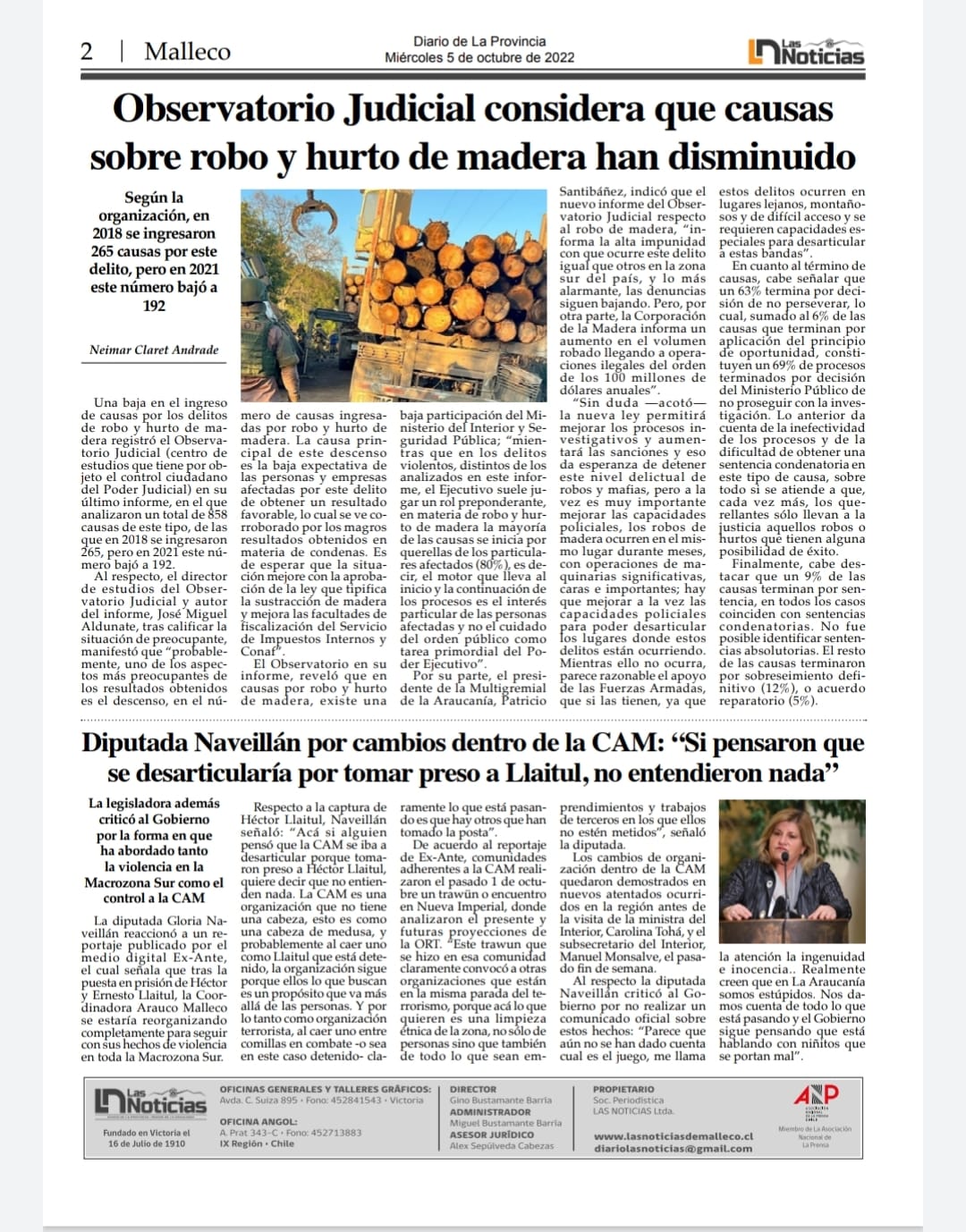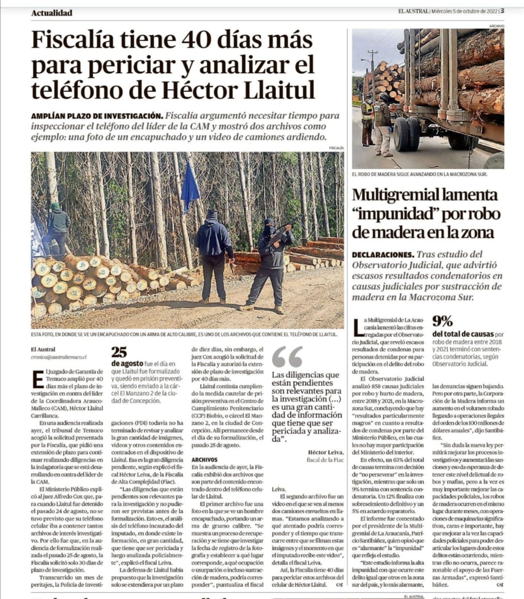 Multigremial lamenta «impunidad» por robo de madera en la zona – Austral Temuco – 5.10.2022