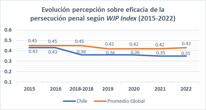 La situación es preocupante, porque un aspecto fundamental de la fuerza y solidez de una institución descansa, en parte, en la buena o mala percepción ciudadana sobre su funcionamiento. Este principio cobra especial importancia para el Ministerio Público dada su rol disuasorio. En efecto, en la medida que se perciba un ente eficaz en la persecución y acusación de los delitos, los potenciales infractores percibirán un mayor riesgo de castigo, lo cual podría inhibir ciertas acciones delictuales. En cambio, una percepción sobre el MP como un órgano ineficaz establece una sensación de impunidad que bien podría incentivar el delito especialmente en el crimen organizado.